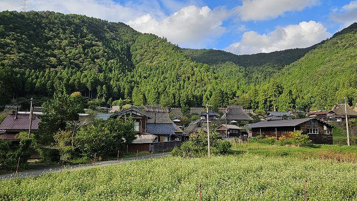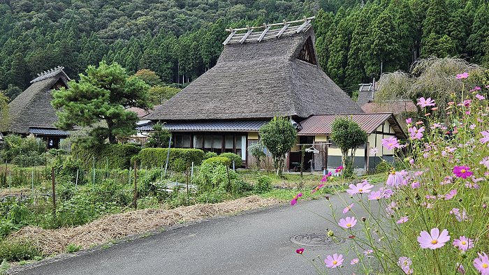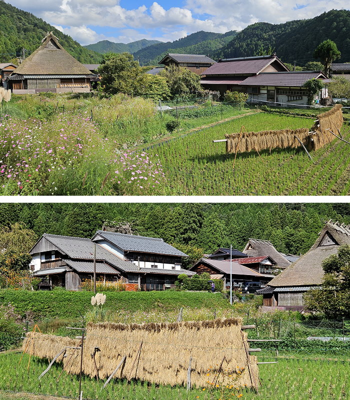 美山町,位於京都府近乎中央的位置,四面環山,中央有由良川流經,四季分明的美麗地區,建於17世紀到19世紀江戶時代的聚落,以其保存完好的傳統茅葺屋頂的「美山茅葺之里(かやぶきの里)」聞名,與白川鄉、大內宿並列為「日本三大茅葺屋根集落」之一,於1993年被選定為國家重要傳統建築群保存地區。茅葺之里「北」集落,為美山町最核心的景區,約有50戶民宅,其中現存 39 座茅葺民宅,保存了小規模、不商業化的村莊原貌,豐富自然景觀與傳統生活方式共存,是擁有這類里山魅力的代表性聚落,被譽為「京都的世外桃源與秘境」; 2021 年,美山町被世界旅遊組織(UNWTO)列為「世界最佳旅遊山村」,結合日本古老農村生活與田園自然之美,展現純樸人文優美的山村景觀。