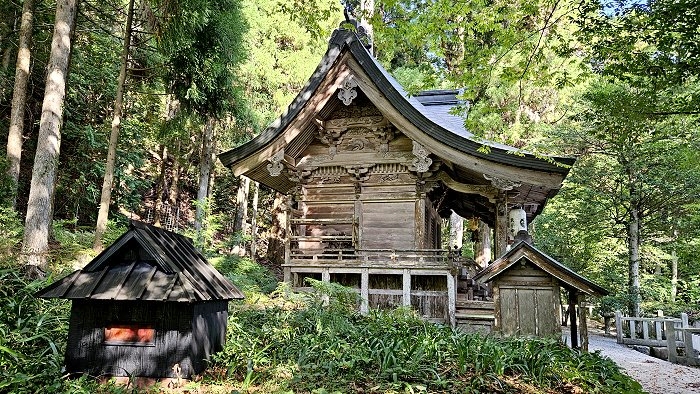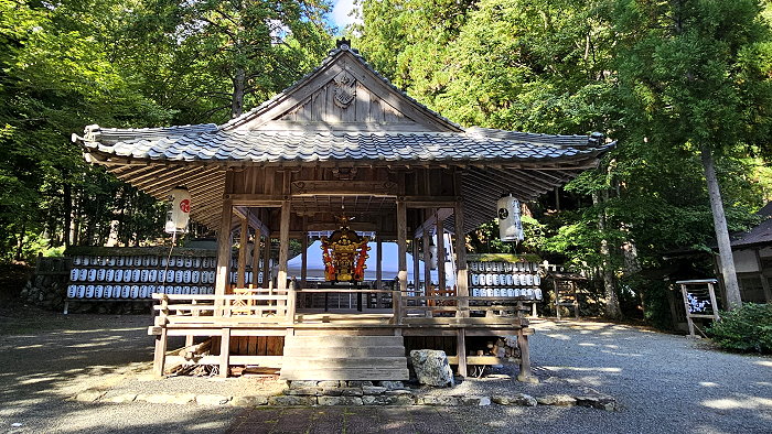 當中停駐著毎年「宵宮・例祭・神幸祭(神輿巡行)」的神輿。祭典時會獻上舞樂等各種音樂,人們還抬著神輿穿過村莊,祈求驅邪避兇,保佑村人平安。