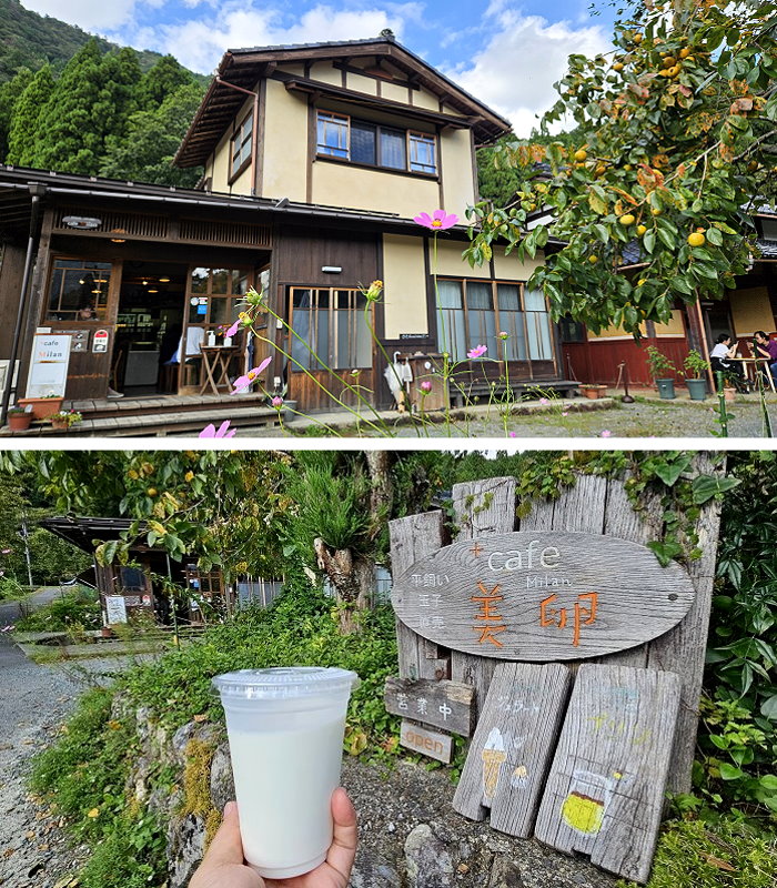 カフェ美卵(Café Miran),中野養雞場直營的小型咖啡店,主打以美山牛乳和放養雞蛋製作的義式霜淇淋、蛋奶布丁──就來杯產量有限、味道香濃的美山牛乳。