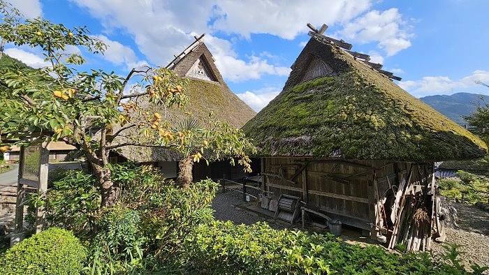 村落內的茅葺屋多數設有五本千木;偶有設置七本千木的農家,如:村裡最大的一座茅葺農舍「小小藍美術館」(↑圖左後方那棟),原為世襲村長中野家所擁有,被認為是「豪農」的象徵。