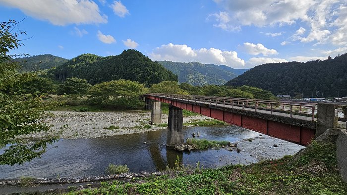 長除橋,橫跨於由良川之上,因為橋身呈現紅色,也被稱為「赤橋」,是通往茅草場的主要橋梁。