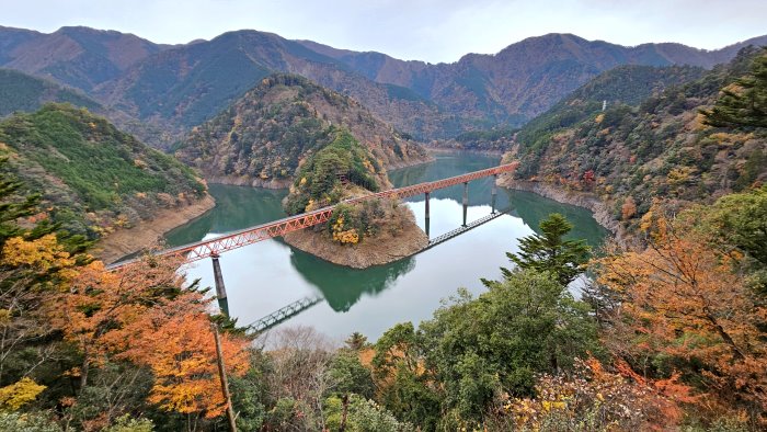 自「奧大井彩虹橋」眺望接岨湖。