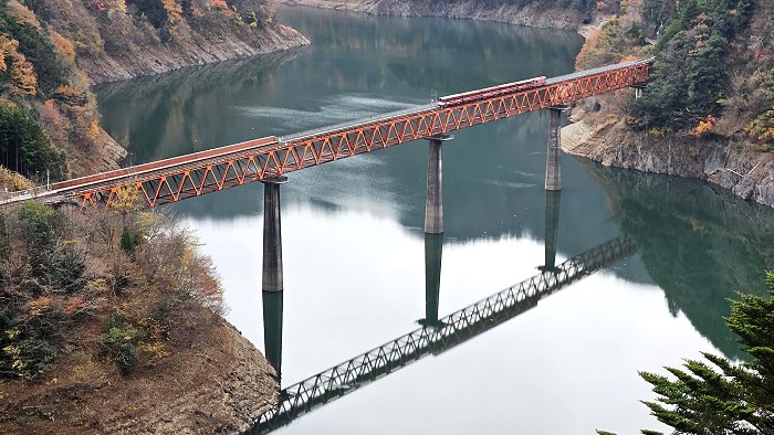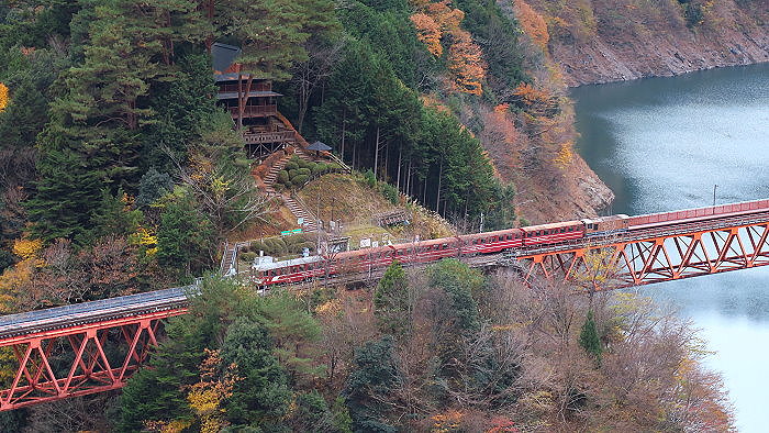 行駛於奥大井彩虹橋的列車。