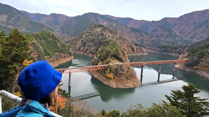 「彩虹橋展望台」是眺望奥大井湖上駅絕佳據點。