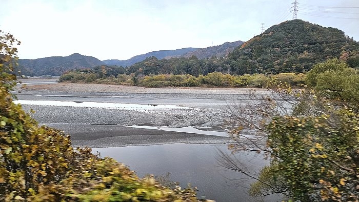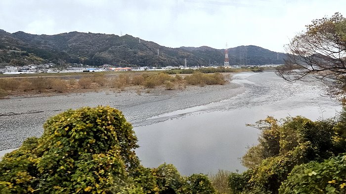 山林環抱大井川河道。