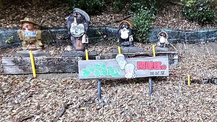 神尾駅邊由信樂燒製作的陶狸。