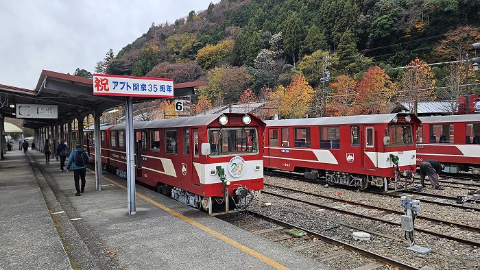 井川線列車進站。