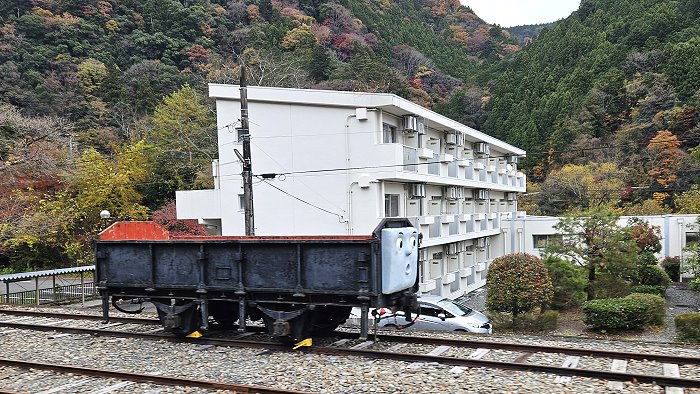 自欄杆框景奧大井湖上駅,別有趣味。