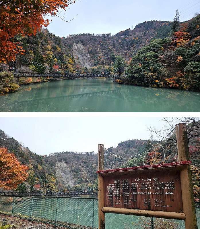 塩郷の吊り橋(鹽鄉吊橋),全長220公尺,橫跨大井川及大井川鐵道,是大井川上最長的吊橋。