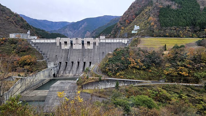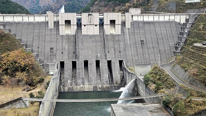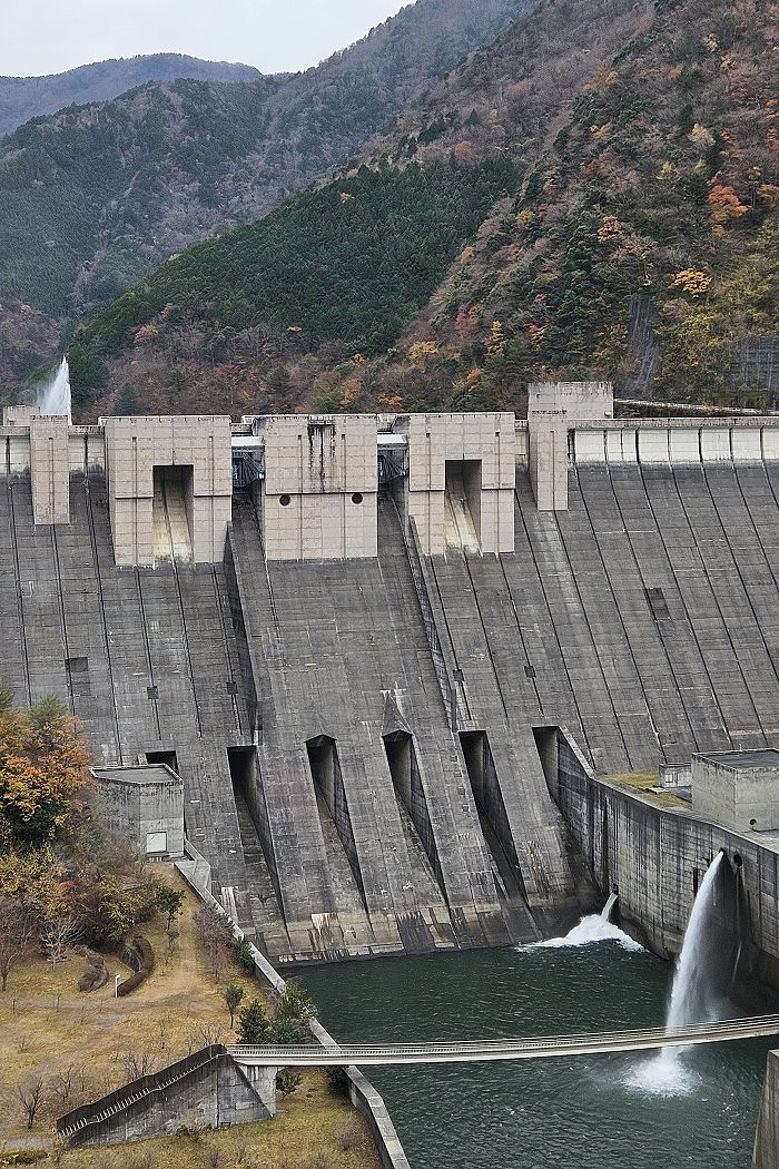 橫跨橫跨長114公尺、高22公尺的水壩堤岸的「しぶき橋(志吹橋)」,可以看到洩洪的壯觀景象。