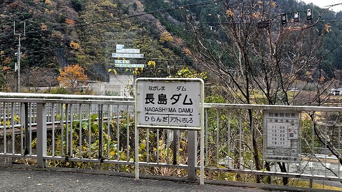 長島ダム(長島水壩)駅,位於長島水壩右岸海拔485公尺,1990年隨著建設長島水壩啟用;阿布特式電氣機關車頭也在此站脫離,所以在往千頭方向設有Abt式機車專用的留置軌道。