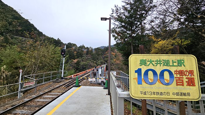 奥大井湖上駅於平成 13 年(2001年)被評為「中部車站 100 選」之一。