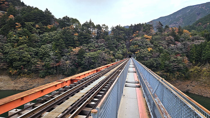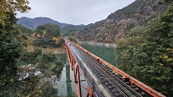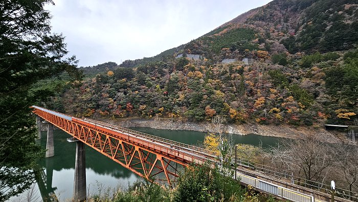 橫跨「接岨湖」的鐵橋,即是奥大井湖上駅所在處。
