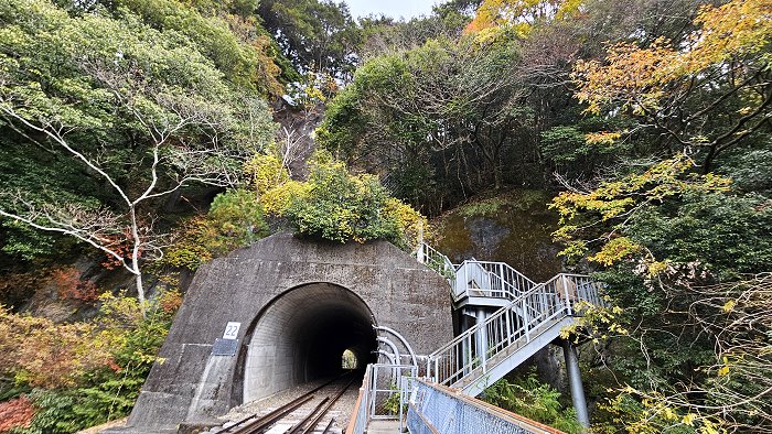 走過橋,盡頭隧道旁登上鐵梯。