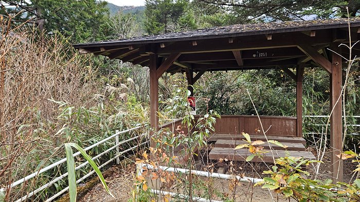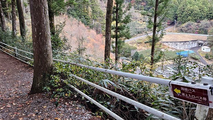 來到位於奧大井湖上駅對面的山腰,除了通往「湖上入口バス停」,也是「彩虹橋展望台」所在處。