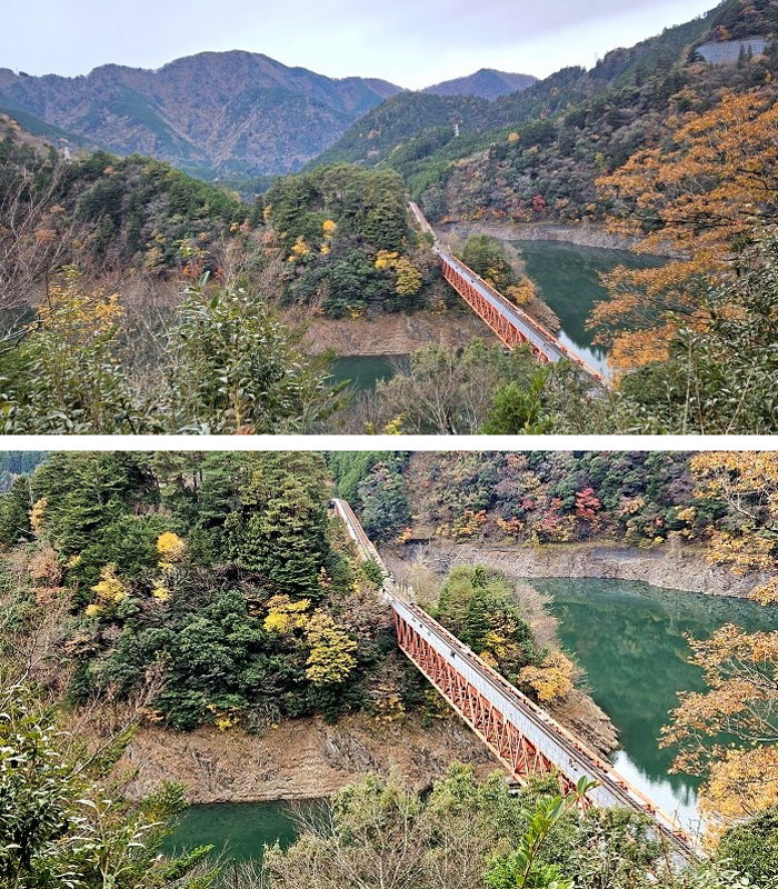 自梯上眺望奧大井彩虹橋。