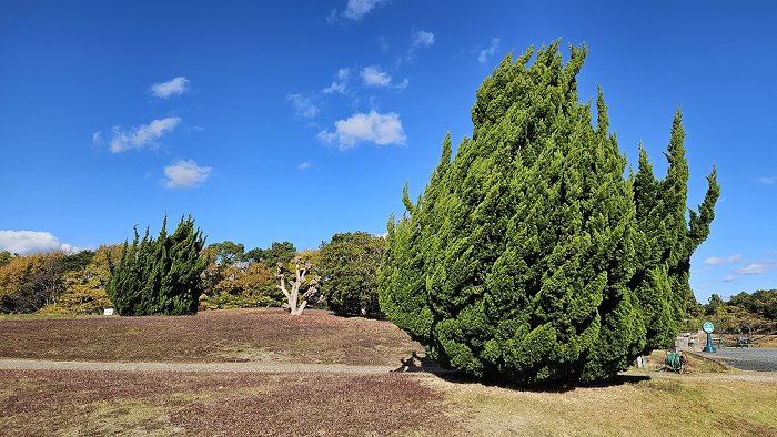 「見晴の丘」上巨大龍柏,樹形如燄火。