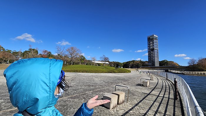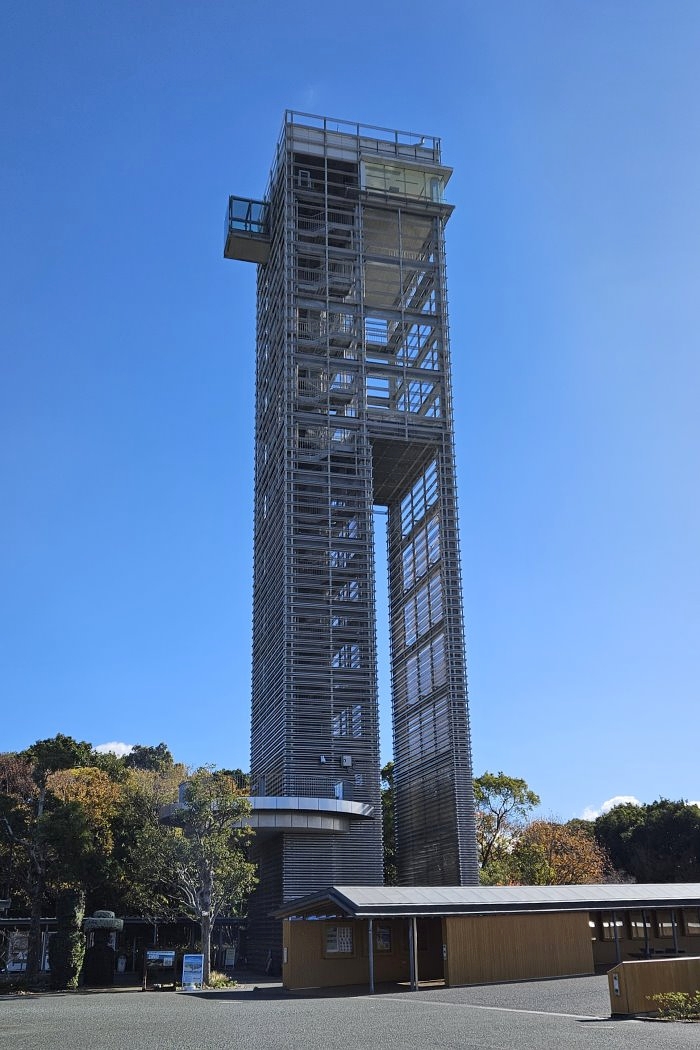 展望塔,高度54公尺,可付費登上44公尺高度的展望台,俯瞰濱名湖和下方花田,天氣晴朗時可以360度欣賞濱名湖風光,甚至可以遠眺富士山。當時花田完全光禿禿,所以也讓過。