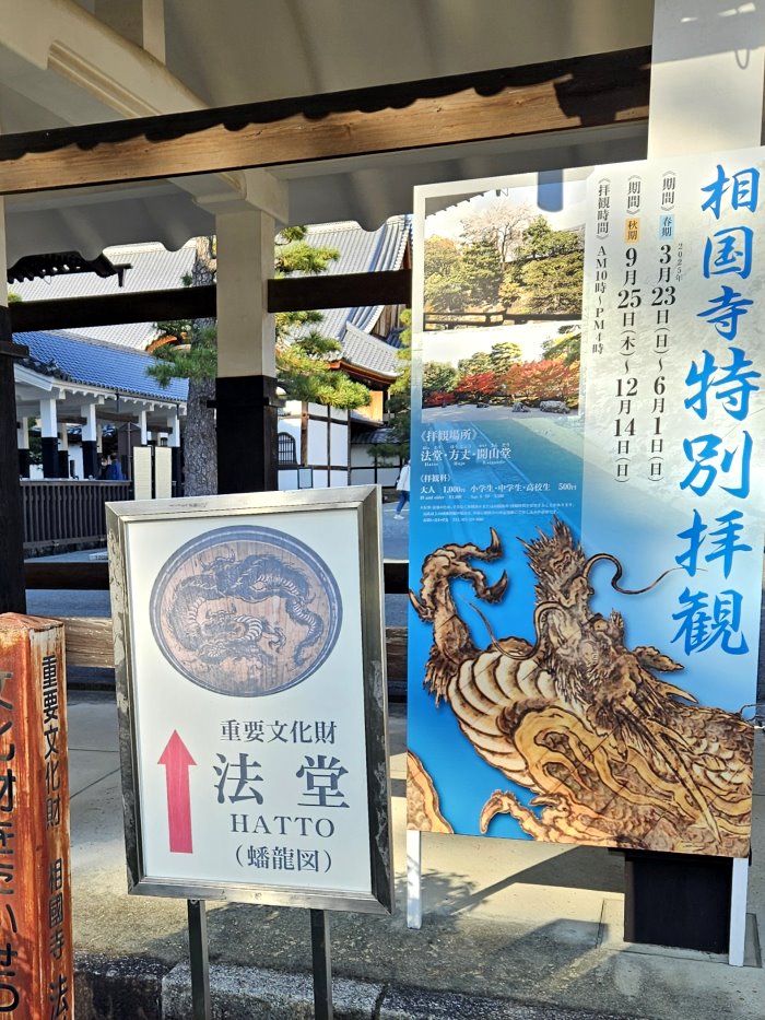 相國寺一年開放春、秋兩季特別拜觀(2025年「秋の特別拝観」於09月25日~12月14日),可參觀法堂、方丈與開山堂。2026年春の特別拝観訊息參見官網公告:https://reurl.cc/Shsuji