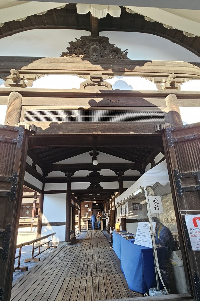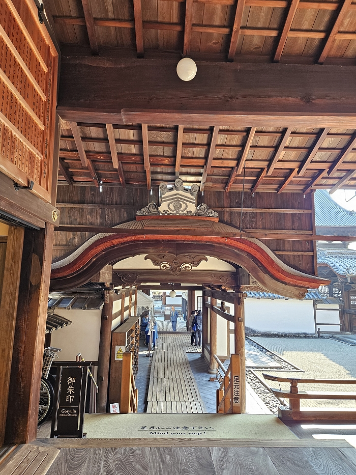 方丈迴廊的出入口,唐破風與雲板造型優美。