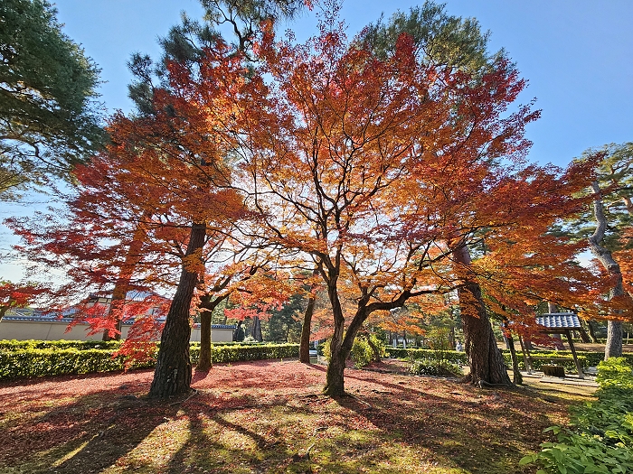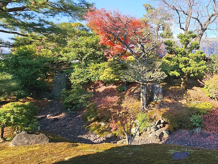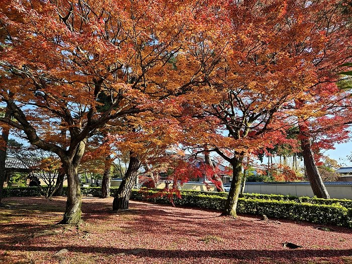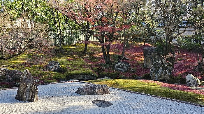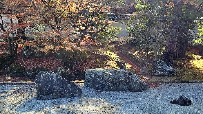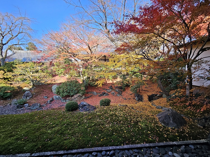裏方丈庭園紅葉繽紛斑斕,落了滿園秋色。