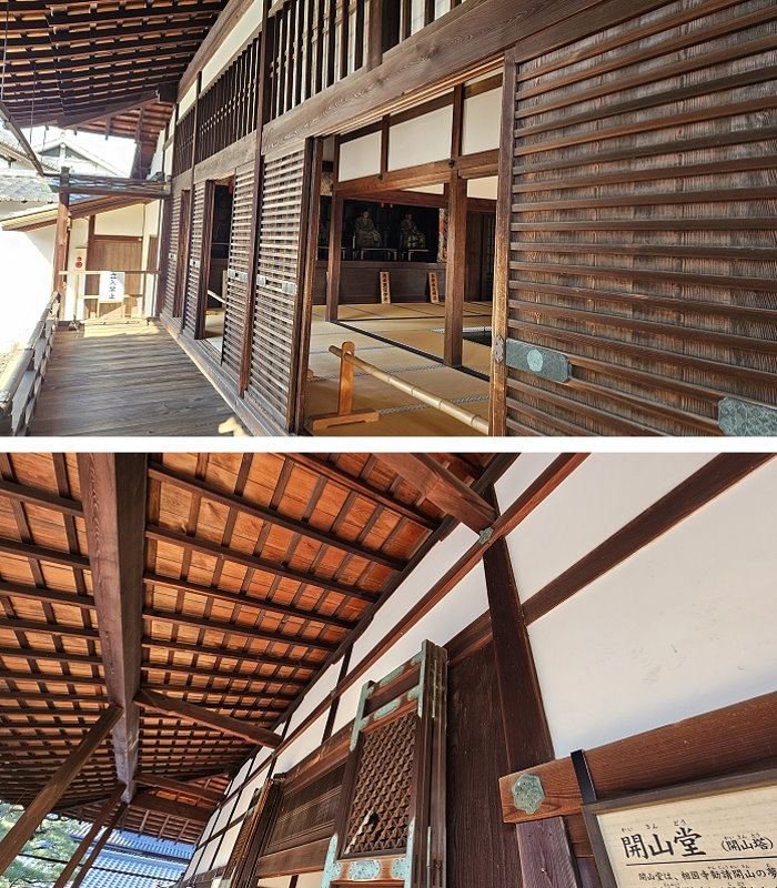 開山堂,位於法堂之東,現在的建築為江戸時代末期桃園天皇其皇后的恭礼門院黒御殿,於文化4年(1807年)移築經過擴建和部分改建而成,當中主要安置開山夢窓国師之像,西壇則安置有:仏光国師像、仏国国師像、普明国師像、足利義満像,東壇安置與相國寺相關的皇室成員的牌位和塑像(內部禁止攝影)。