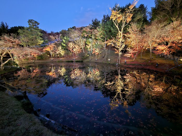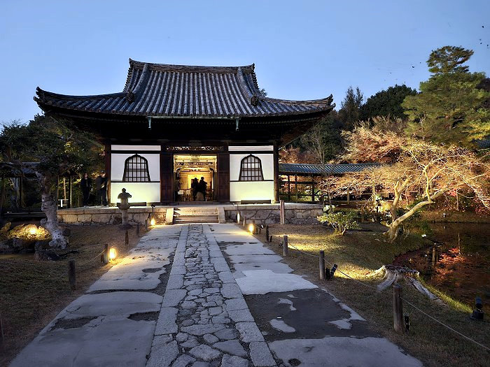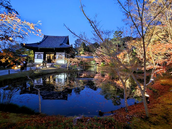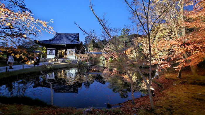 夜幕下臥龍池與開山堂,是高台寺夜間拜觀之重點。