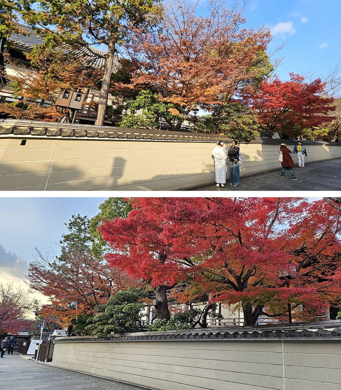 大雲院築地塀與紅葉盛況。