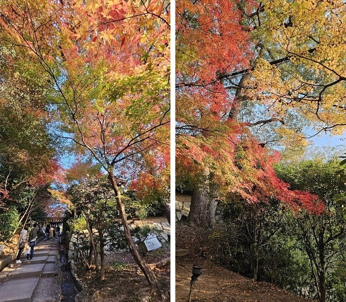 靈屋前的參道,紅葉繽紛。