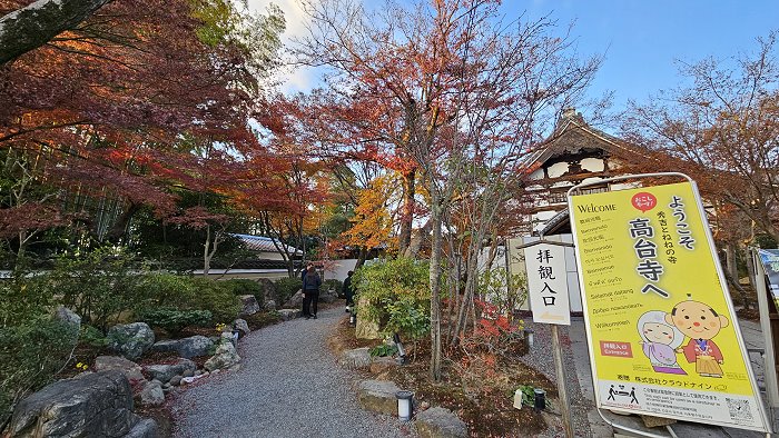 高台寺,位於京都市東山區,正式名稱為「高台聖壽禪寺」,山號「鷲峰山」,臨濟宗建仁寺派的禪寺,是豐臣秀吉的正室北政所(一般稱之:ねね/寧寧)為其夫祈禱冥福,慶長11年(1606年) 在德川家康的財政支援下,於京都東山建立高台寺,建築與庭園融合當時名匠與藝術家設計,並迎請建仁寺的高僧三江紹益為開山住持。豐臣家滅亡後,她在幕府的庇護下定居於此渡過餘生;高台寺因而成為結合歷史典故、美麗庭園與愛情傳說的寺院聲名大噪。環境清幽是高台寺一大特色,春櫻與秋楓的夜間點燈亦為寺院的亮點,是京都東山區人氣紅葉名所之一。