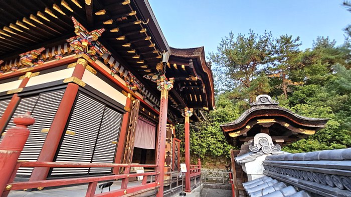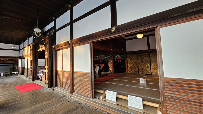 靈屋的前廊。這棟建築細節展現了安土桃山時期的工藝水準,被指定為重要文化財。