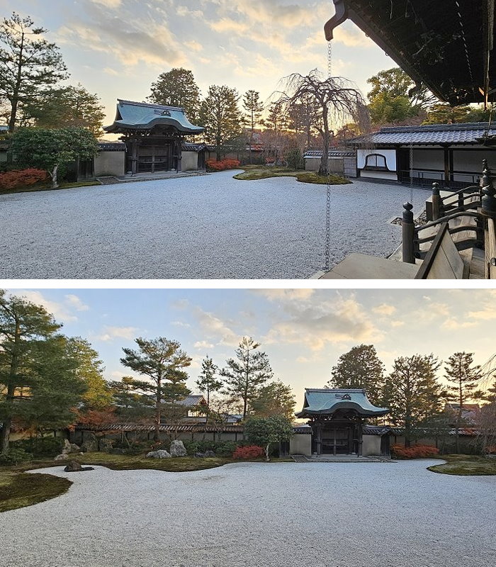 方丈前庭稱之「波心庭」,一片白砂鋪就的枯山水庭園,展現禪寺特有的靜謐氛圍。