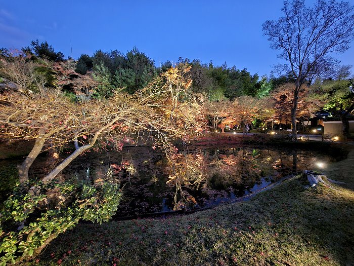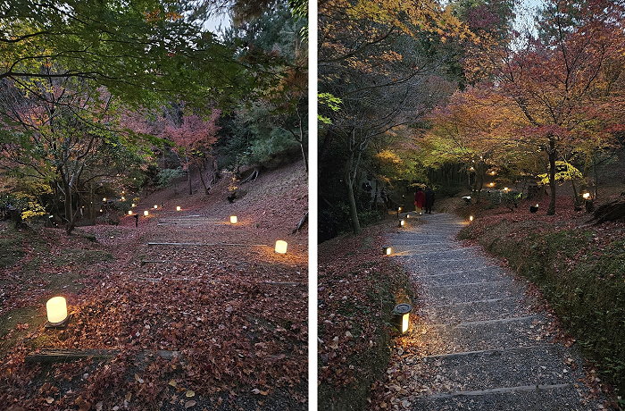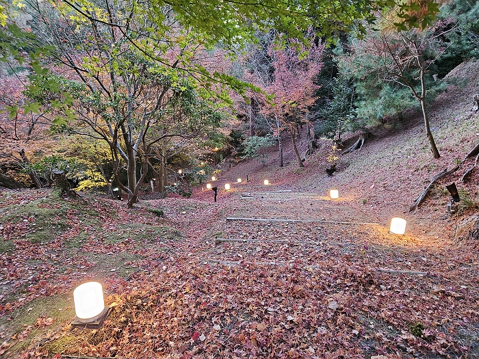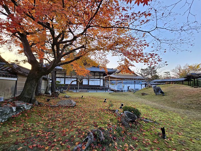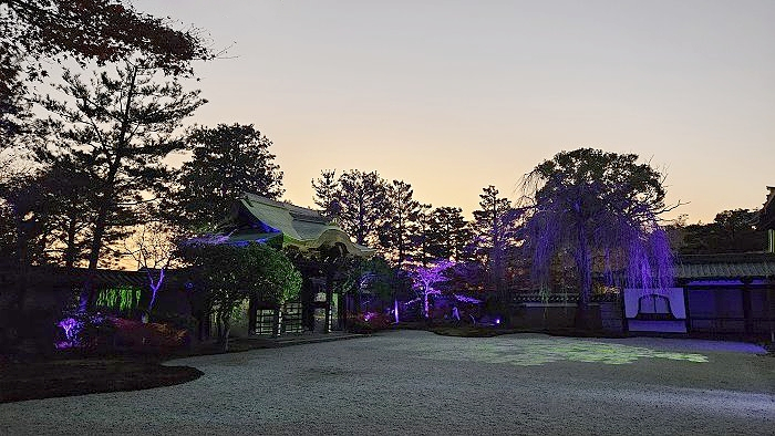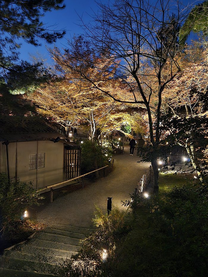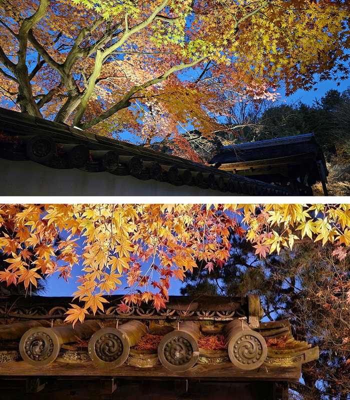 2025年秋季夜間特別參拜(10/24日-12/14)投映主題為《永恆羈絆—寧寧與松》:以北政所寧寧與前田利家的正室松兩人之間的深厚友情為主題,進行投影映射展示;投映時間約3分鐘,會循環播放。當時因時間關係來不及進到方丈前庭正面觀看,只有在外圍側拍,也看不出個所以然。