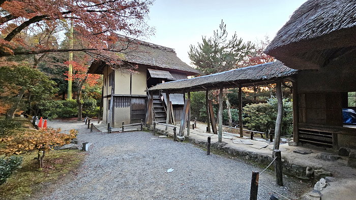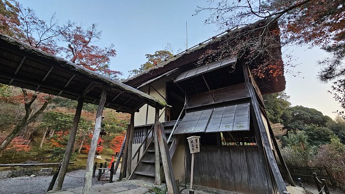 這道「土間廊下」的有頂迴廊,是北政所寧寧在慶長年間將傘亭與時雨亭移築過來時所增建,原本自伏見時,這兩棟茶屋是分開獨立存在的。