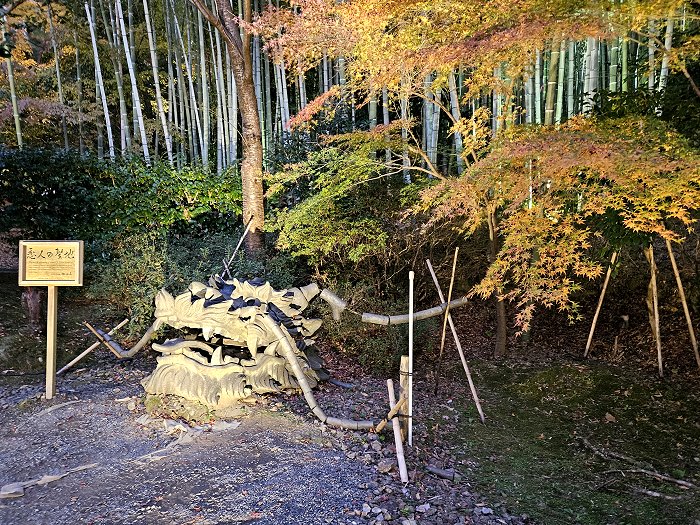 竹林出口擺了個龍頭,一旁還立著「戀人の聖地」,龍頭曾是2012夜間參拜的造景,不知是否要標榜寧寧與秀吉的愛情故事。