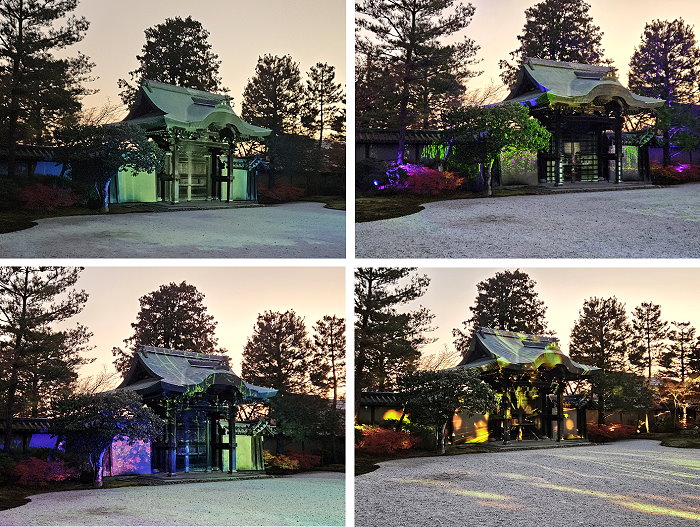 高台寺是京都第一座點亮寺院的寺廟,在1994年平安京建都1200週年首辦。此後,寺院每年都會舉辦四次特別的夜間拝観,波心庭及勅使門每年夜間特別參拜都會投射映象燈光秀,並以不同的主題呈現。