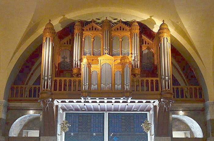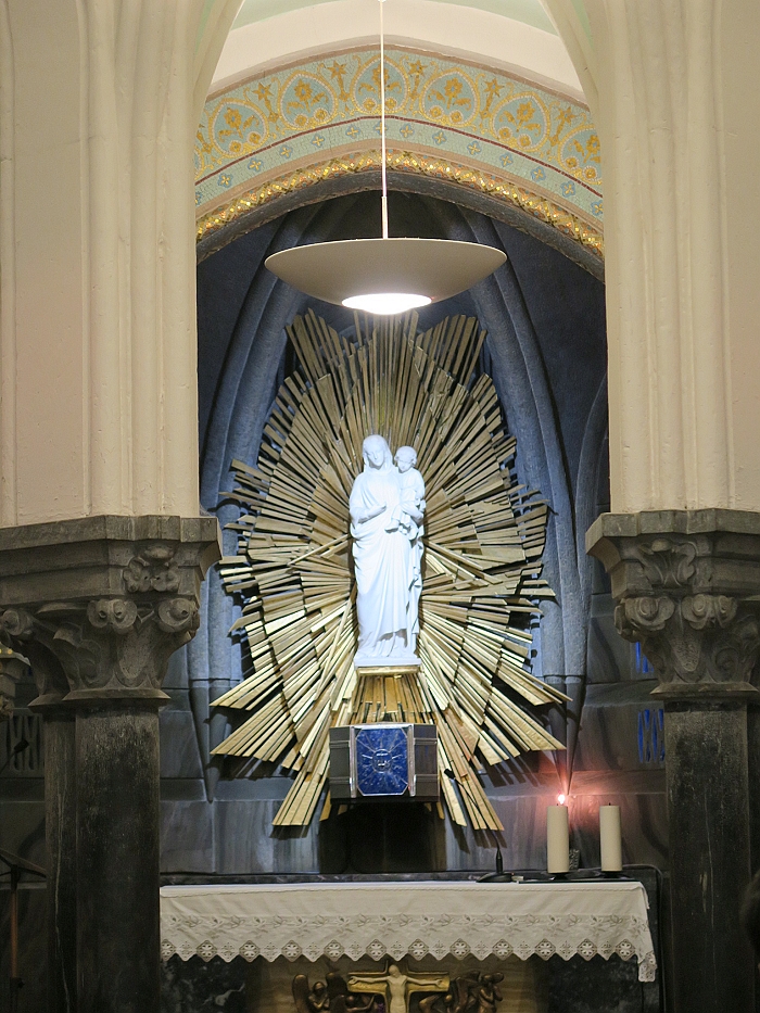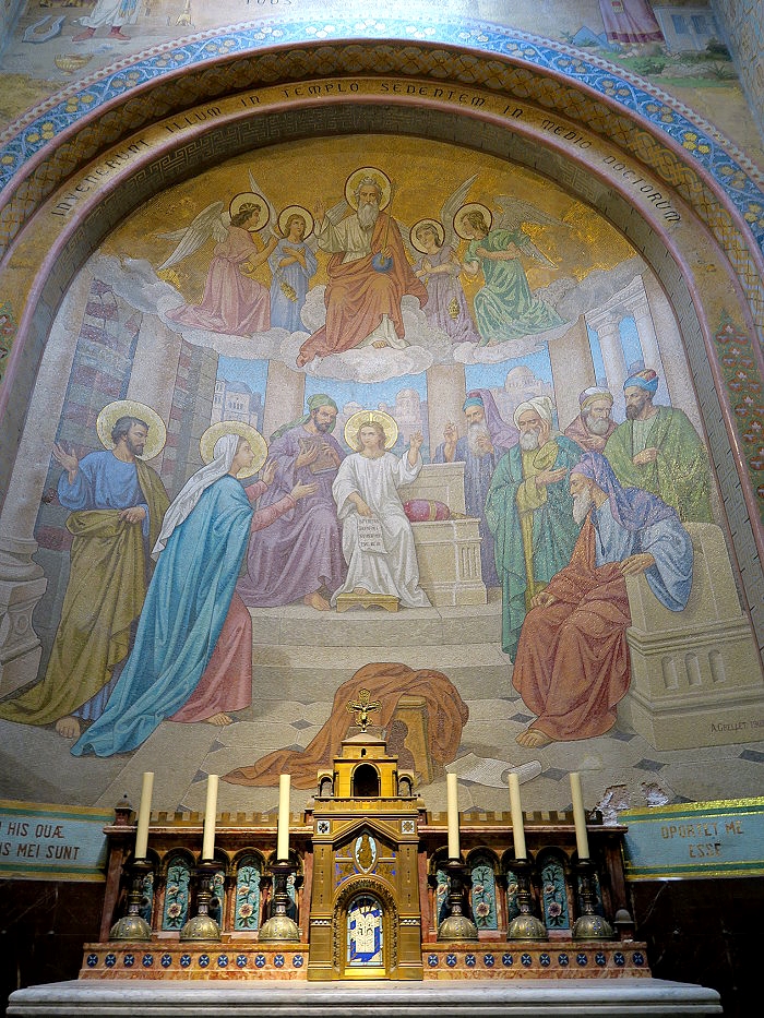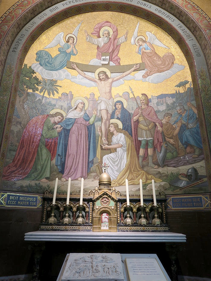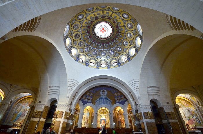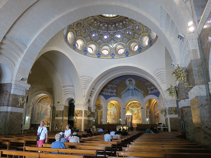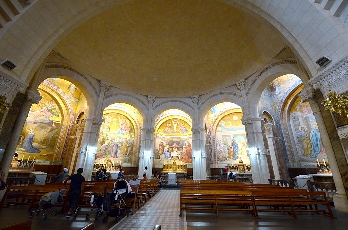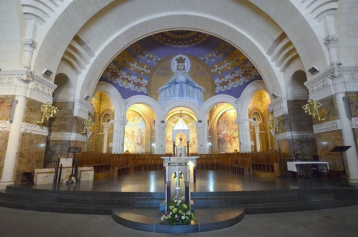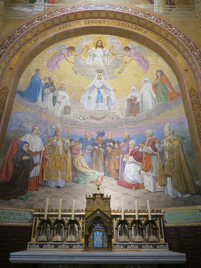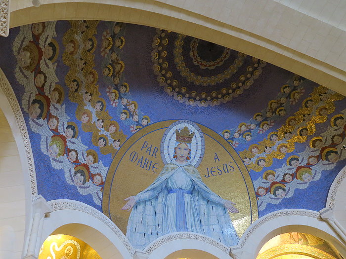 唱詩班後殿穹頂的巨型馬賽克壁畫,描繪了聖母瑪利亞的形象,該壁畫為埃德加·馬克桑斯(Edgard Maxence)的設計;聖母被眾多張開雙臂的天使環繞,向朝聖者們致以歡迎的姿態,並附有體現她代禱的格言:「Par Marie à Jésus (通過瑪利亞向耶穌祈禱 )」。