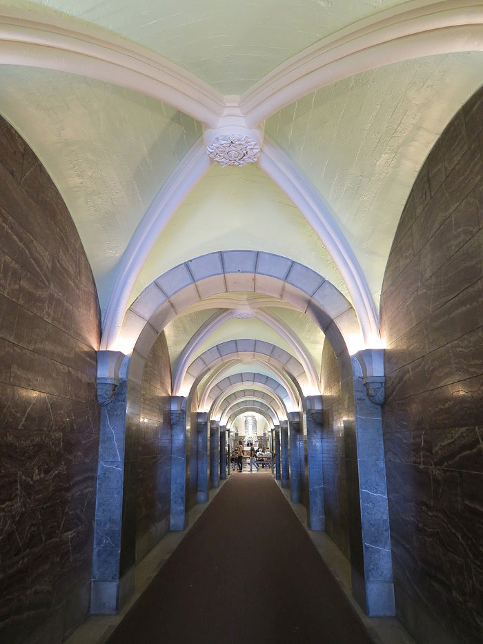 走過一條長長的走廊進入聖母無染原罪聖殿地下墓室(La Crypte),這裡位於馬薩比耶勒岩洞正上方,是聖母顯靈地點建造並啟用的第一座小教堂,於 1866 年在貝爾納黛特·蘇比魯的見證下開放。