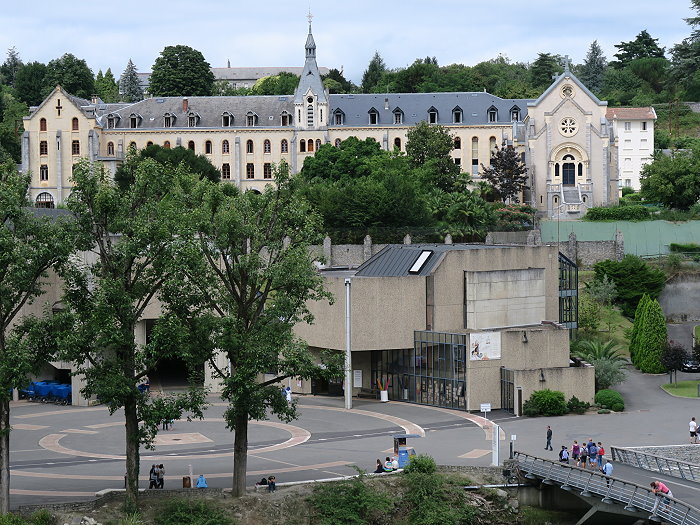 俯瞰玫瑰經廣場。右方山丘上為「庇里牛斯山堡壘博物館(Château Fort Musée Pyrénéen)」,其歷史可以追溯到中世紀,最早是一座防禦庇里牛斯山區域軍事要塞,特別是在宗教戰爭期間具有重要地位。19 世紀後,城堡被改造為博物館,專門展示庇里牛斯山區的文化和歷史。