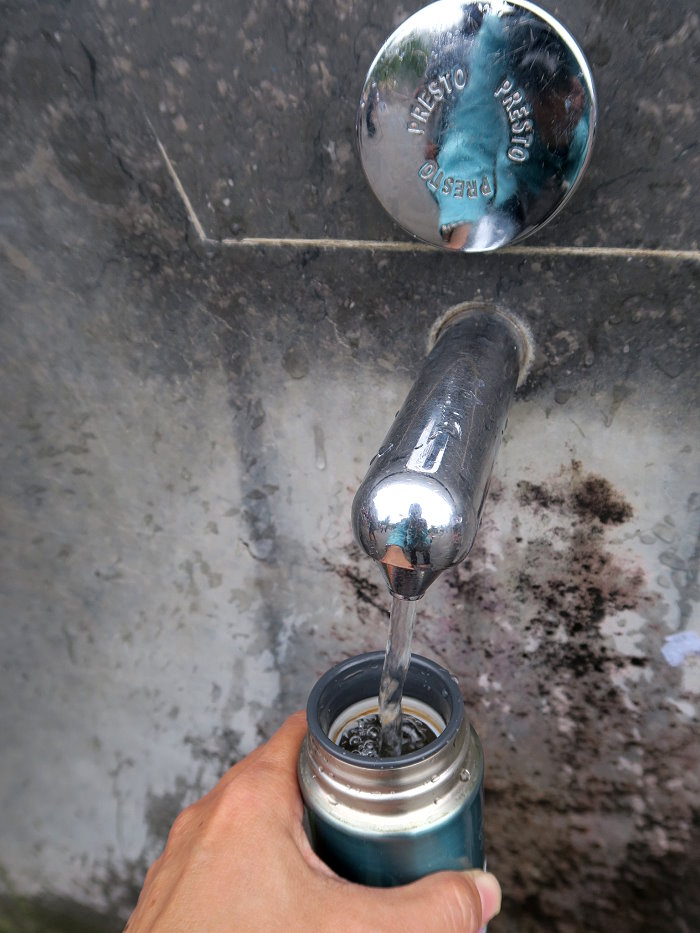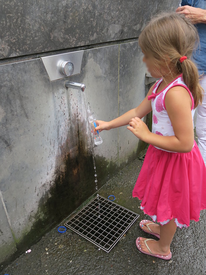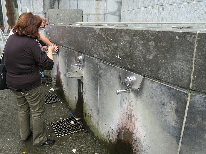 按壓玫瑰聖母聖殿拱門下牆面的水龍頭開關,就可盛裝來自馬薩比耶勒岩洞的聖水。相傳「盧爾德泉水(leau de Lourdes)」為具有療癒能力的神聖泉水,於國際上極負盛名且具有相當影響力,被譽為「擁有神奇力量的泉水」,每年吸引數百萬朝聖者前來飲用、洗滌。