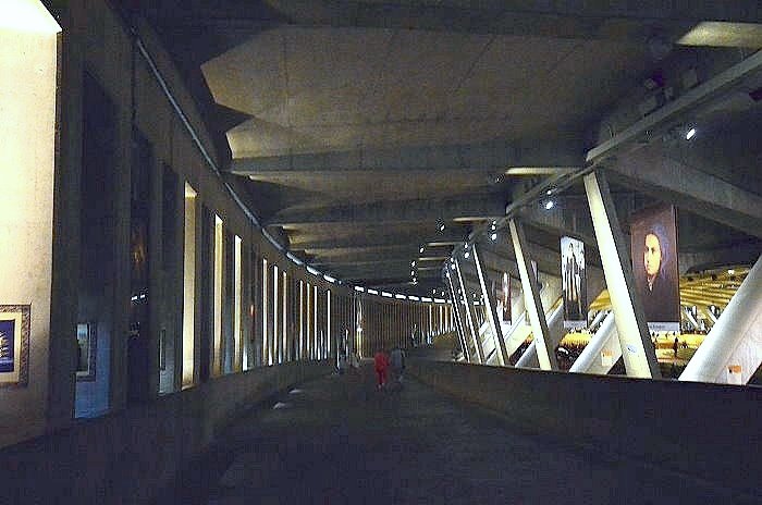 沿著拱廊上的坡道行往上層聖殿「聖母無染原罪聖殿 」。