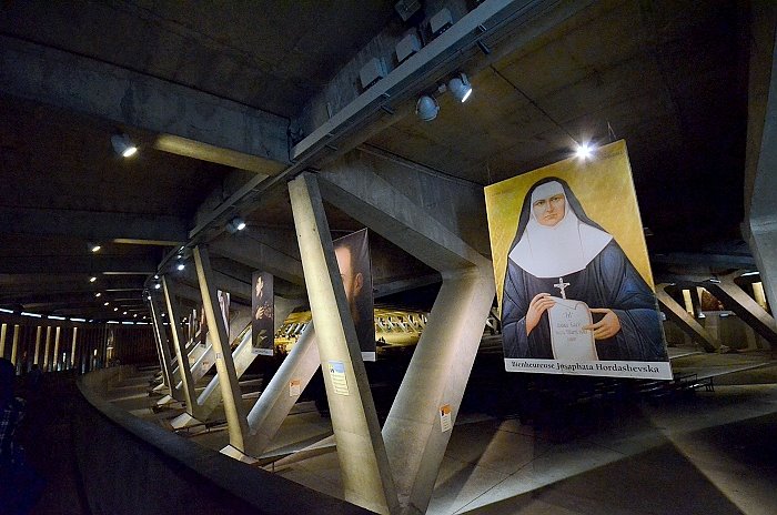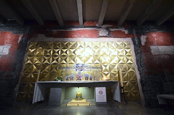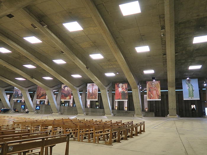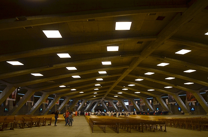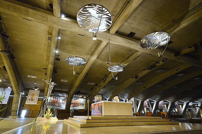 支撐拱頂的29個預應力混凝土框架的基座向外退縮,使所有信徒都能看到位於中央的祭壇。