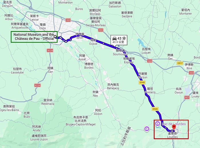 從波城城堡驅車前往盧爾德聖母朝聖地(Sanctuaire de Notre-Dame de Lourdes)不到一個小時的車程。