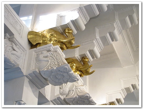 梁柱間有金色的象頭與精細的蓮花雕刻,這樣金白色調與佈滿雕刻的裝潢,讓CJ一整個覺得粉有巴洛克建築的華貴風。