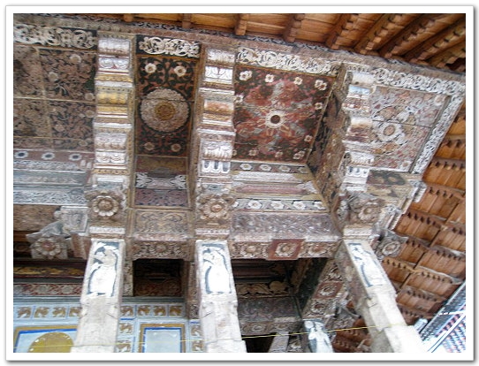 舊殿的牆面,雕樑畫棟上有繁複細緻的圖飾,讓人看得目不暇給,也深深感受當時打造寺廟的技師、參與雕繪工匠對佛牙寺虔誠奉獻的心意。