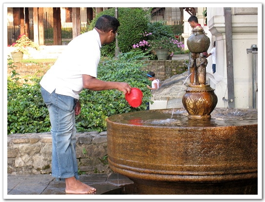 門口的走廊下設有淨水池。