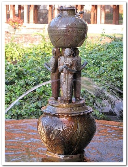 淨水池銅雕出水口特寫。