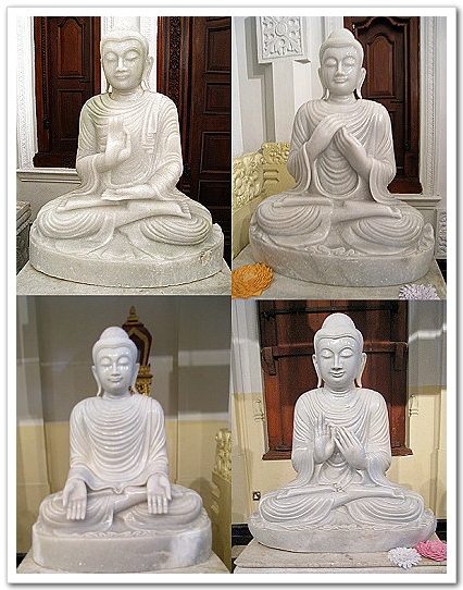 柱子與柱子之間是一尊尊的純白坐佛,佛像結的手印亦有不同。