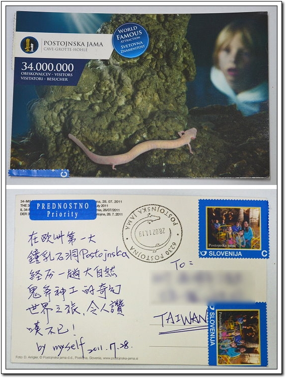 洞內的紀念品商店,上圖的明信片即在此振筆疾書 ,投遞店中所設之郵筒方得蠑螈圖案郵戳(圖為團長蕭老大所拍)。
