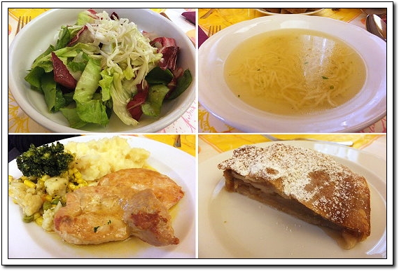 這餐內容,主菜是烤雞,甜點是蘋果派。